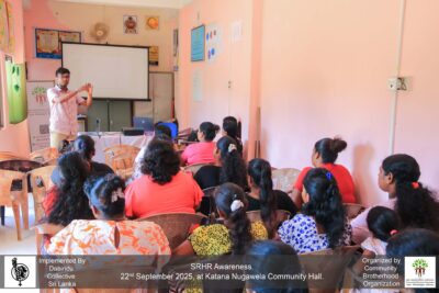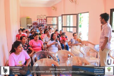 Within this initiative, as part of the Dabindu Collective’s project on empowering community voices through strengthening sexual and reproductive rights, a community awareness and prevention program was conducted on September 22, 2025, from 9:00 AM to 12:00 noon at the Nugawala Community Hall in Katana.