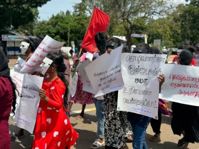 ගෝලීය ඇඟලුම් කර්මාන්තයේ තීරුබදු තර්ජනයට සහ අස්ථාවරත්වයට එරෙහිව ආරක්ෂාව නැවත අවධාරණය කිරීම සඳහා, එක්සත් ජනපදය සඳහා ඇඟලුම් නිෂ්පාදනය කරන කිලිනොච්චියේ සේවකයින් 200+ ක් සමඟ අපි ජාත්යන්තර කම්කරු දිනය සැමරුවෙමු. කිලිනොච්චි සමුපකාර ශාලාවේ පැවති අපගේ කම්කරු දින රැලියට වවුනියාව, කටුනායක සහ බියගම සේවකයින් මෙන්ම කිලිනොච්චියේ ප්රාදේශීය සිවිල් සමාජ සංවිධාන ද එක් වූහ.