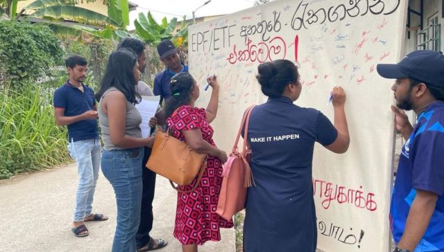 Dabindu Collective is a non-profit organization, established in 1984, to protect and promote women worker rights in the Free Trade Zone (FTZ) of Katunayake. For over 38 years, Dabindu has worked actively and tirelessly to mobilize and collectivize women workers; empower workers with knowledge about human rights, women’s rights and labour rights; and strengthen women workers’ leadership.
