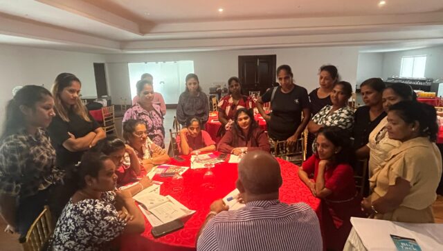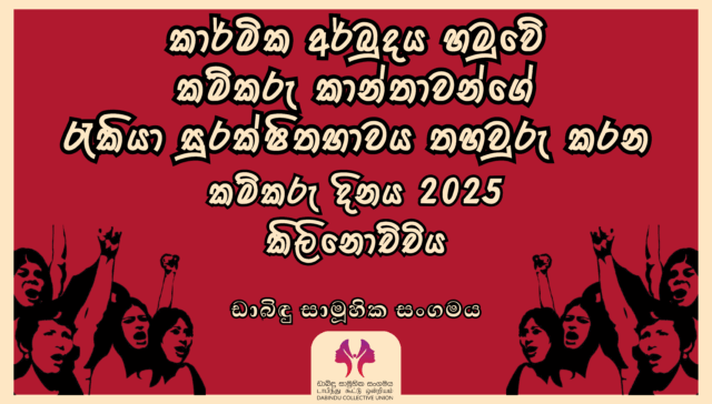 Dabindu Collective is a non-profit organization, established in 1984, to protect and promote women worker rights in the Free Trade Zone (FTZ) of Katunayake. For over 38 years, Dabindu has worked actively and tirelessly to mobilize and collectivize women workers; empower workers with knowledge about human rights, women’s rights and labour rights; and strengthen women workers’ leadership.