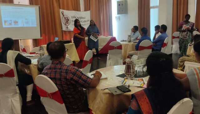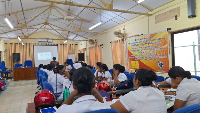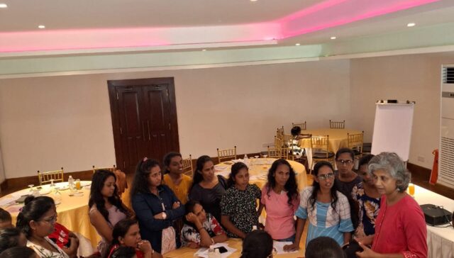 Dabindu Collective is a non-profit organization, established in 1984, to protect and promote women worker rights in the Free Trade Zone (FTZ) of Katunayake. For over 38 years, Dabindu has worked actively and tirelessly to mobilize and collectivize women workers; empower workers with knowledge about human rights, women’s rights and labour rights; and strengthen women workers’ leadership.